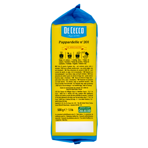 DE CECCO N°201 PAPPARDELLE SEMOLA GR.500 De Cecco Le Specialità Pappardelle n° 201 500 g