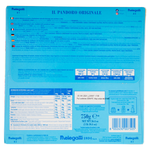 Il primo Pandoro della Tradizione Pasticcera Italiana, inimitabile per morbidezza e gusto, con semplici e selezionati ingredienti come uova fresche, burro e Lievito Madre Melegatti 1894.