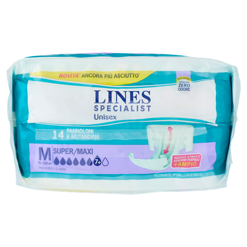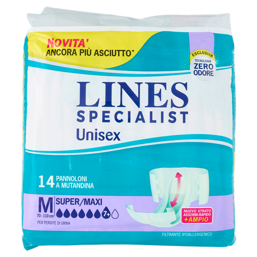LINES SPECIALIST-PANNOLONE MUTND.x12+2-G Lines Specialist Unisex Pannoloni a Mutandina M Super/Maxi 14 pz