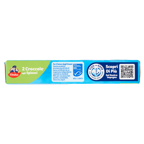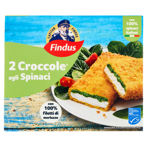 Le Croccole agli spinaci sono fatte con 100% filetti di merluzzo da pesca sostenibile e certificata MSC. Sono avvolti da pangrattato extra-croccante, con un ripieno agli spinaci 100% italiani per un gusto inimitabile.
