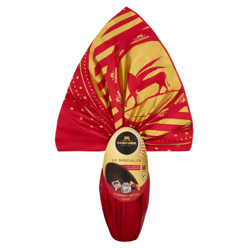 L'uovo di Pasqua di cioccolato fondente extra di PERUGINA è l'uovo classico, che sposa l'eleganza dell'incarto al gusto autentico del cioccolato. Un guscio di cioccolato fondente extra racchiude al suo interno una golosa sorpresa di cioccolato: 3 cioccolatini della tradizione PERUGINA: Baci Classico, Grifo Fondente e Liù Latte.