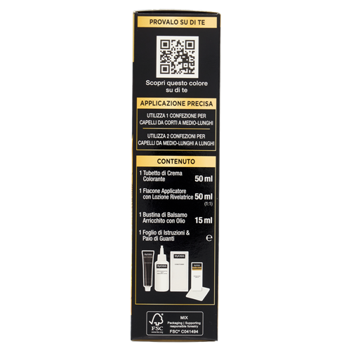 Contiene perossido d'idrogeno, fenilendiammine (diamminotolueni) e resorcina. Da non usare per tingere ciglia e sopracciglia. Sciacquare bene i capelli dopo l'applicazione. Vedere il fondo dell'astuccio per la lista completa degli ingredienti.