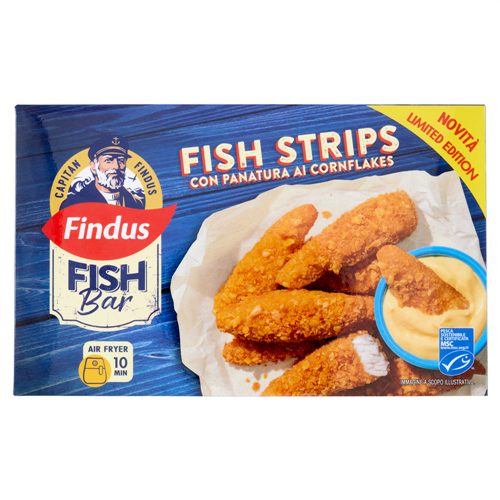 8 Min - In padella: friggi le Fish Strips, ancora surgelate, in una padella con abbondante olio caldo per 8 minuti, a fuoco medio. Girale di tanto in tanto per farle dorare da ambo i lati e, prima di servirle, asciugale con della carta da cucina.